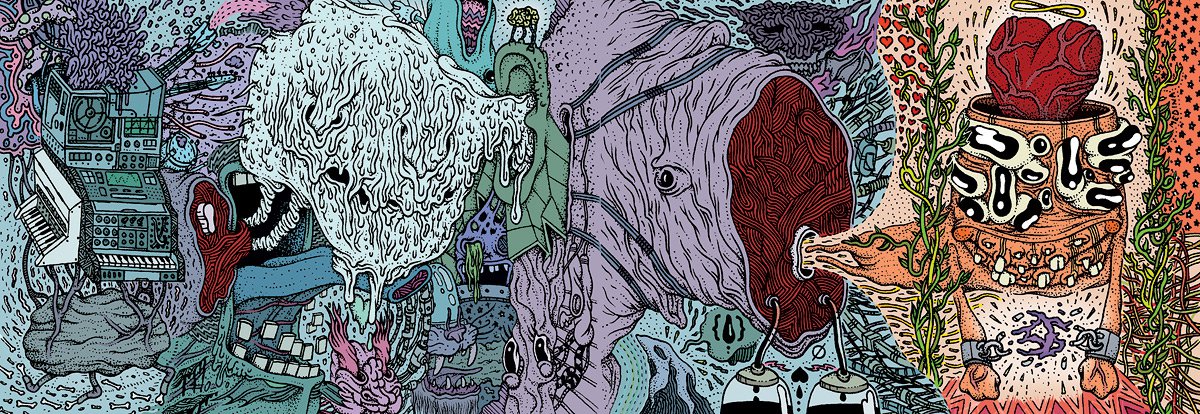 #039: Vandaag het werk van Diego Medina. Het werk van deze Braziliaan is niet makkelijk te omschrijven. Hij maakt tekeningen en grafische ontwerpen voor alles dat beeld nodig heeft lijkt het, van skateboarden tot etalages, van stickers tot… Nouja van alles. Ik zou zijn stijl omschrijven als horror vacuï (angst voor lege ruimte), een term die wordt gebruikt voor bijvoorbeeld Oud-Keltische afbeeldingen, waarin geen enkel plekje leeg gelaten wordt. Ook doen zijn tekeningen denken aan het werk van Keith Haring, die ook werkt met scherpe lijntekeningen, die de ene keer gewoon zwart-wit blijven, en de andere keer opgevuld zijn met een explosie aan kleur. Zelf zegt Medina over de invloed op zijn werk: “i love psychedelic art, love european movies from the 60s and 70s, love dirt, love bad drawing (like terry johnson / king terry from japan), love marc bell´s work (he´s from canada). and so it goes….”