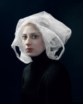 Hendrik Kerstens also refers to the old masters with his photography. He makes portraits of his daughter Paula, often with dark clothes on, against a dark background. Mostly she has one simple attribute that strongly refers to something outside the picture. A strong image is ‘Bag’, a photo in which she has a plastic bag on her head. It seems to refer to two different things: to our consumption society in which we wrap and throw away a lot of things, but also to portraits by Dutch seventeenth century painter Johannes Vermeer. Most of the photographs refer to the images we all know of the seventeenth century, by only using a prop like a hairnet, a towel, a sweater or aluminium foil. The website of his gallery (Witzenhausen Gallery) says: “Not only does he picture her in relation to events in her own life, he also projects on her his fascination with the dutch painters of the seventeenth century.”[19]