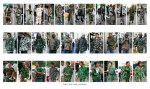 Hans Eijkelboom has a different approach. He has a camera on his neck, and with his hands in his pockets he controls the button. He looks for the opposite of what Ten Napel looks for: he doesn’t want to strip people from their external identities, he wants to show them. With the ‘hidden’ camera, he watches people go by in the city and photographs people that wear the same type of clothes.[21] Afterwards, he puts them in a row in order to show this public, shared identity. The outcome is often very humorous, but it clearly and painfully shows how we put our own identities aside to fit in with the rest.