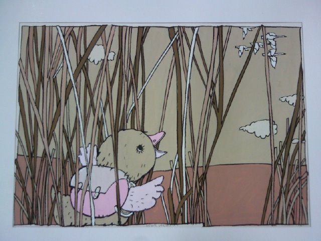 “Henk Vermolen (1934-2010) leefde in een periode van verandering. Toen hij begon te werken bij de NTS in 1961 was illustratie een hele gebruikelijke toevoeging aan televisie; met name voor kinderprogramma’s maakten illustratoren tekeningen die direct gefilmd werden om binnen zo’n programma getoond te kunnen worden. In een hele serieuze stijl maakte Vermolen vele illustraties voor – met name bijbelse – televisieprogramma’s, zoals Logboek en Achtergronden van de bijbel. Tijdens zijn carrière ontstonden meer en meer mogelijkheden richting animatie, maar Vermolen koos ervoor om zich niet te specialiseren in dit vak. In plaats daarvan experimenteerde hij met diepte in zijn illustraties, door maquettes te maken, en gelaagde illustraties zoals Kleine Isar, Oude testament Esau en Jacob en Pak je prentenboek. Natuurlijk maakte hij ook ‘traditionele’ illustraties, bijvoorbeeld voor Herkent U deze melodie?, Sesamstraat en Donderslag. Intussen werd zijn stijl steeds kleurrijker en vrolijker, met vaak een sprankje humor. Tot het einde van zijn televisieloopbaan in 1989, wanneer de meeste grafisch ontwerpers in het bedrijf (nu het commerciële NOB) verscheidene digitale technieken onder de knie gekregen hadden, bleef Vermolen bij zijn traditionele illustratietechnieken. (…)